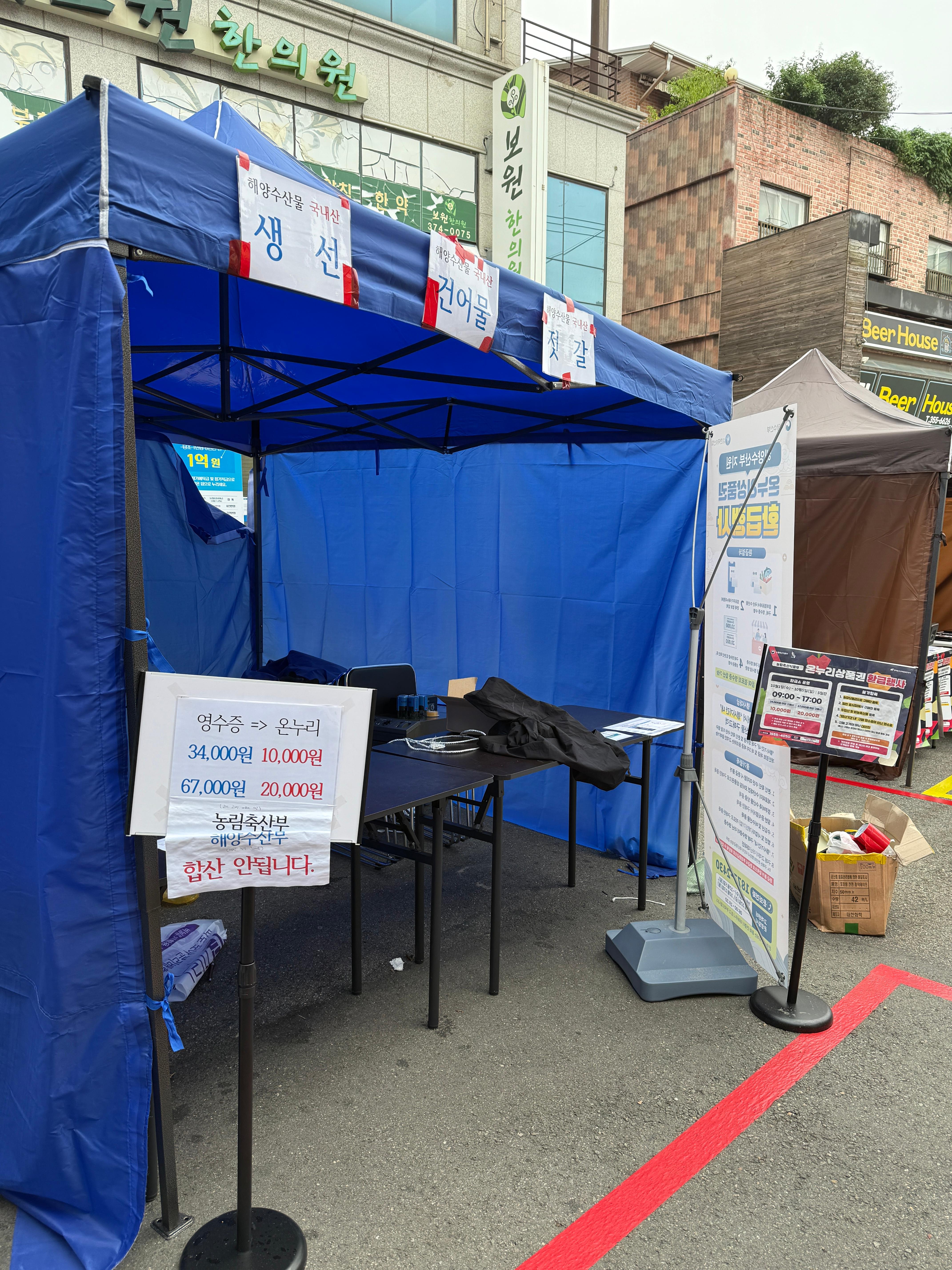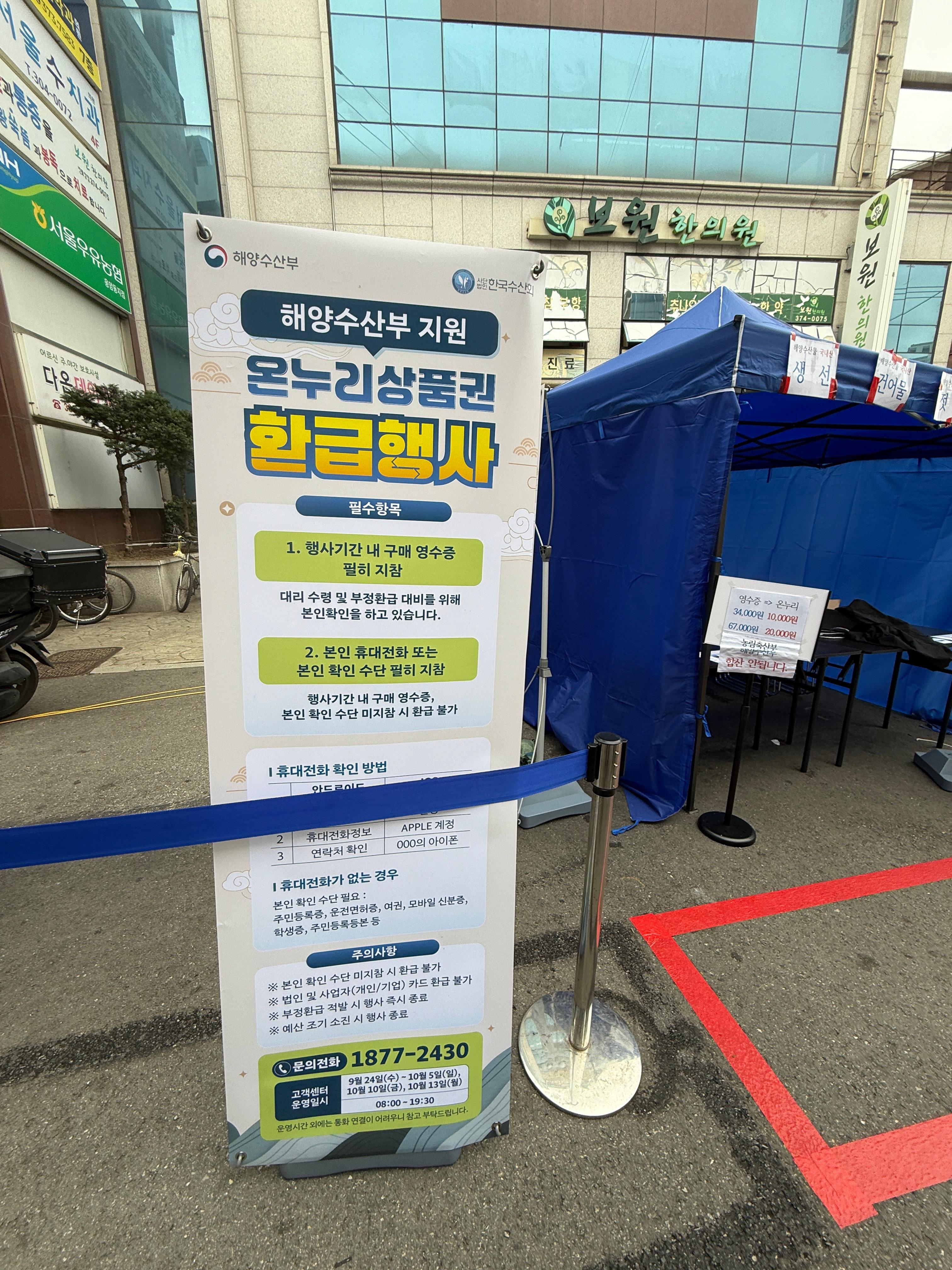 옆 가게 상인분이 “3만4천 원 이상 사면 온누리상품권 1만 원을 준다”고 알려주시더라고요.